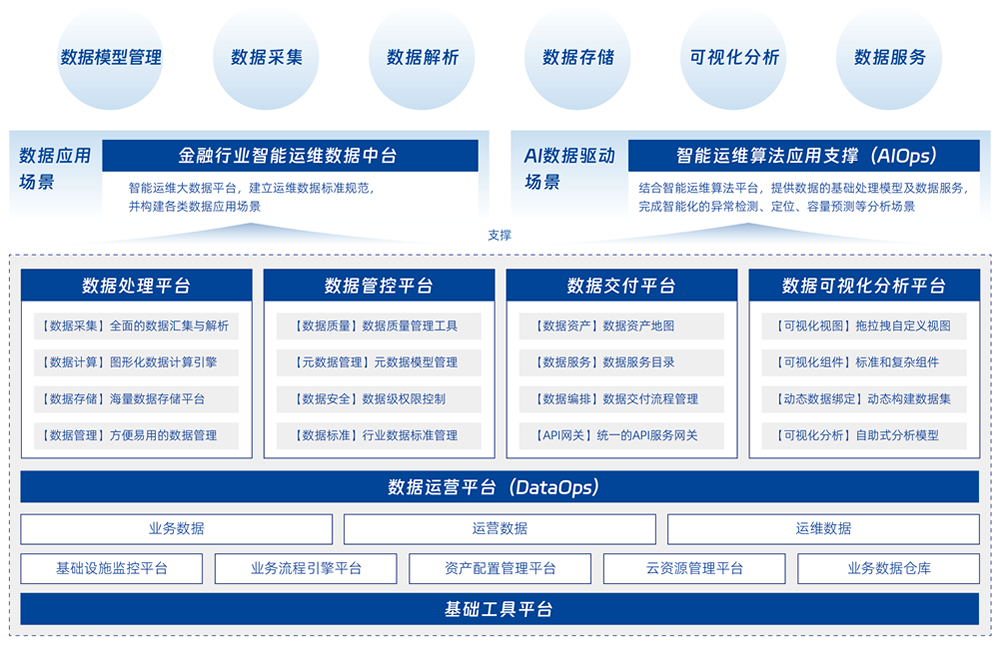 通过平台整合各种运维工具的数据和服务能力,,,在保证数据隐私和安全的前提下,,通过大数据技术等手段,,,来解决 IT 系统运行过程中产生的海量数据分析问题,,,并将分析结果通过数据共享服务提供给各类上层应用,,,帮助 IT 运维和管理人员全面了解系统运行状态,,提升可用性。。。。