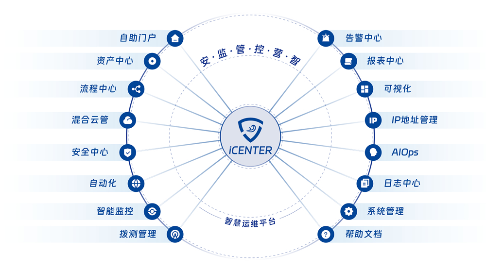 这是一款拥有自主知识产权及专利的产品。。。创新地将安全服务与AG尊龙传统核心运维服务有机的融合,,打造出集“安、、监、、、管、、、、控、、、、营、、、、智”为一体的智慧运维平台。。。其中的安全中心模块已形成了以运维账号统一管理为基础,,覆盖运维安全审计、、、网络流量分析、、、云安全等众多运维场景的安全能力。。。